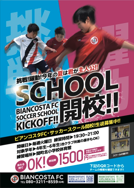 そしてこのたび、より多くの子どもたちにサッカーの楽しさを届けたいという想いから、BIANCOSTA FCスクールを開校することとなりました!